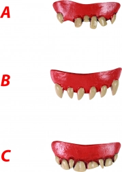 Válasszon három fogstílus közül, amely szórakozást és eredetiséget ad jelmezéhez.