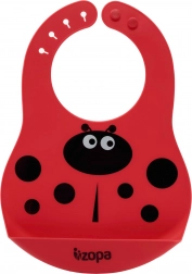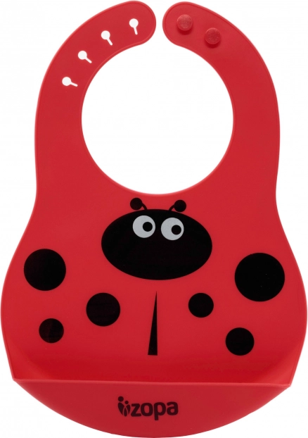 Elegáns szilikon előke katicabogár mintával, amely ideális védelmet nyújt gyermeke ruházatának etetés közben, praktikus zsebbel a lepotyogó ételek számára.