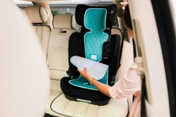 - Helyes övvezetés – a betét formája tiszteletben tartja az autósülés biztonsági elemeit.