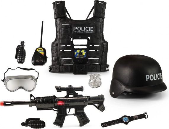 Válj a bevetési egység hősévé! Ez a gyerek rendőrségi készlet kínál rendőrmellényt cseh feliratokkal, műanyag géppisztolyt és gazdag szerepjáték-kiegészítőket – sisakot, gránátot, rádiót, órát, jelvényt és szemüveget. A könnyű műanyag és a biztonságos kialakítás gondtalan szórakozást garantál otthon és a szabadban.