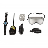 Rádió, óra, gránát, jelvény és szemüveg – minden, amire a kis rendőrnek szüksége van, hogy „saját csapatával” egyeztessen és hiteles kalandokat éljen át.