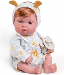 A baba aranyos zsiráfruhába van öltöztetve, fejpánttal, amit kis sárga fülek és cumi egészítenek ki, ezáltal növelve a realista megjelenését.