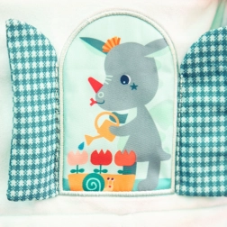 Minden egy csengővel kezdődik, amely megcsendülve egy apró meglepetést tár fel – megjelenik Stella. Ne feledkezzünk meg a kis zümögő méhecskéről, amely a házikó körül repked, valamint más interaktív elemekről, mint a tükör és a bevarrt csörgők, amelyek még élvezetesebbé teszik a játékot.