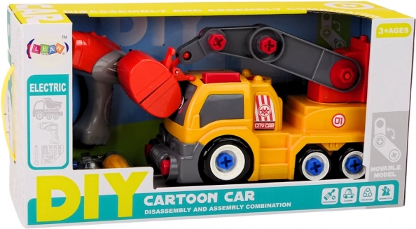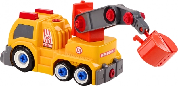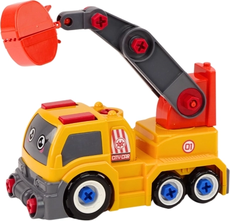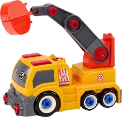 Ez a színes, narancssárga darus teherautó minden gyermeket elbűvöl, aki szereti az építőgépeket. A DIY szétszerelési és újbóli összeszerelési lehetőségnek köszönhetően a gyerekek felfedezhetik, hogyan működik a jármű, miközben fejlődik türelmük és logikus gondolkodásuk. A mozgatható részek, mint a darukar és a fogó/kanál, számos valósághű játékszcenáriót kínálnak.