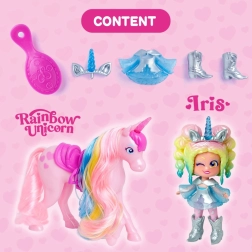 Hiszel az unikornisokban? A KookyLoos világában minden lehetséges! Ismerd meg Aurórát és szivárvány unikornisát, Start, akinek sörénye igazi hajból készült! Fésüld meg a kefével, és próbálj ki különböző frizurákat. Készülj fel ezernyi kalandra a KookyLoos-szal! Ne feledd, minden KookyLoosnak megvan a saját kiegészítője, amelyeket más KookyLoos figurákkal kombinálhatsz és cserélgethetsz, és az arcukat egyetlen kattintással megváltoztathatod. A készlet tartalma: 1 baba, 1 unikornis, 1 kefe, 1 ruhaszett.