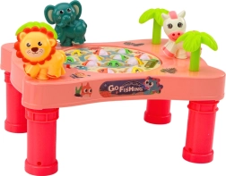 A „Go Fishing” témájú rózsaszín játékasztalka kis akváriummá varázsolja a gyerekszobát. A forgó tányér nyíló-csukódó halacskaszájakkal dinamikus kihívást teremt, amely pontos célzásra és gyors reakcióra ösztönzi a gyerekeket. A vidám állatfiguráknak, a színes megjelenésnek és a dallamoknak köszönhetően a kicsik és nagyok egyaránt megszeretik a játékot.
