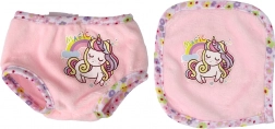 • Eltávolítható ruha: Rózsaszín pizsama, előke és egyszarvús bugyi könnyen levehető és más outfittel cserélhető.