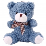 A kék plüss mackó ideális társ mindennapi játékokhoz és remek ajándék minden gyermek számára. Kicsi méreteinek köszönhetően használható medálként, amely kulcsra, hátizsákra vagy táskára rögzíthető. A mackó nyakában barna masni van, amely eleganciát és bájt kölcsönöz neki.