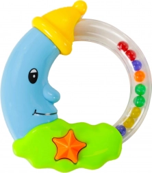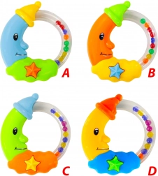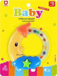 Ez a színes, mosolygós félhold alakú csörgő ideális első játék a legkisebb kezek számára. Az átlátszó gyűrűben lévő színes golyók mozgás közben kellemes hangot adnak, felkeltik a baba figyelmét és támogatják természetes kíváncsiságát. A kontrasztos színek és a kedves dizájn szórakoztatnak, miközben segítik az érzékszervek fejlődését.