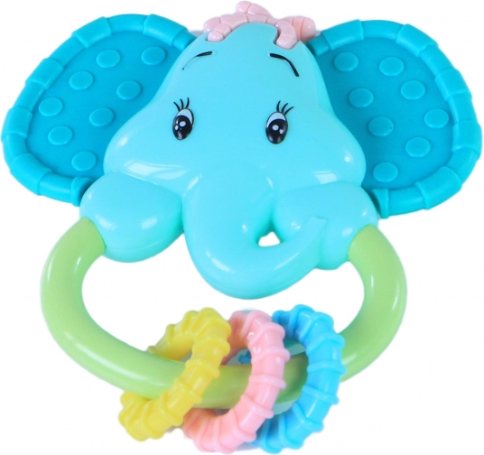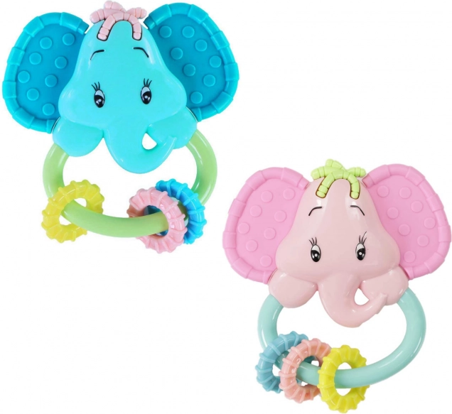 A bájos elefánt alakú csörgő és rágóka minden babát felvidít. Kényelmes fogásával és texturált részeivel kiváló segítség fogzáskor, és támogatja a finommotorikát, az érzékelést és a kéz–szem koordinációt.
