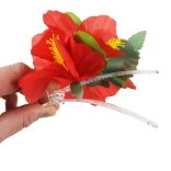 Ez a virágos hajcsat egzotikumot hoz közvetlenül a stílusába. Élénk vörös virágaival és zöld leveleivel bármilyen esemény királynőjévé varázsolja Önt, legyen az tengerparti buli, hawaii est vagy medenceparti.