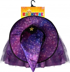 A lila boszorkány jelmezt csillagos dekorral kiegészítve gyermeke ragyogni fog minden partin.