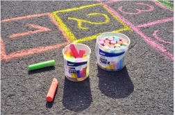 A szett kiváló kültéri tevékenységekhez járdán vagy játszótéren, és a móka után könnyen leöblíthető vízzel. Színösszetétel: 2× sárga, 2× zöld, 4× narancssárga, 2× rózsaszín, 2× lila.