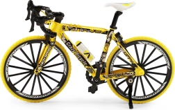 A miniatűr sárga hegyikerékpár remek választás azoknak a gyerekeknek, akik szeretik az akciót és a mozgást, valamint a felnőtt gyűjtőknek. A szabadon futó kerekeknek köszönhetően könnyen elindul és simán halad a sík felületen. A valósághű kivitel polcon és játék közben is remekül mutat.