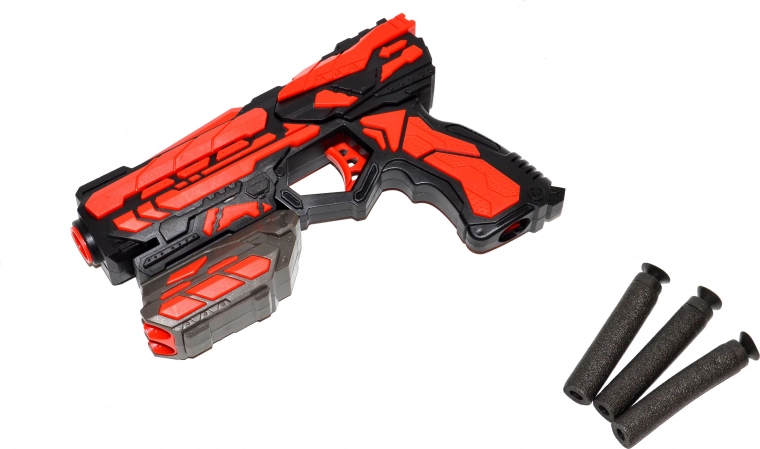 Ez a Phantom pisztoly habszivacs lövedékekkel izgalmas lövöldözős élményt nyújt sérülésveszély nélkül. A készlet tartalma: