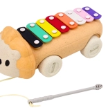 A kerekeken guruló, oroszlán alakú cimbalom egy aranyos és sokoldalú zenélő játék, amely minden gyermeket örömmel tölt el.