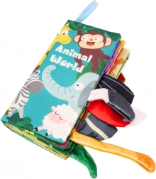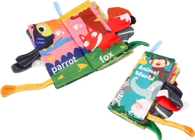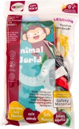 A puha oktatási könyv állatokkal nem csak játék, hanem interaktív fejlődési eszköz kisgyerekek számára. Puha, susogó anyaga és kiemelkedő elemei, mint például az állatok farkai, lenyűgöző érzékszervi stimulációt nyújtanak, amely bevonja az érzékeket és fejleszti a koordinációs képességeket.