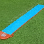 Ez a csúszda vízsugár rendszerrel rendelkezik, amely biztosítja a felület optimális nedvesítését és könnyű csúszást tesz lehetővé. A beépített fúvókák a kerti tömlő csatlakoztatásakor aktiválódnak. A konstrukció puha és biztonságos véget tesz lehetővé a felfújható végeknek köszönhetően. Tartós vinilből készült, garantálja a hosszú élettartamot.