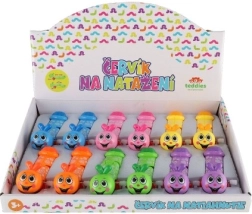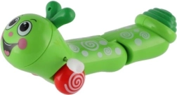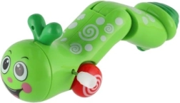 Csavard meg az oldalán lévő felhúzó gombot, és a kukac magától elindul előre. Egyszerű mechanizmus, amely újra és újra leköti a gyerekeket.