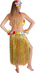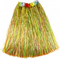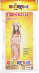 Egy vagány „Hawaii” stílusú szoknya egyetlen hölgy ruhatárából sem hiányozhat! Ez a szenzációs darab ideális kiegészítő farsangra vagy a jellegzetes hawaii „HULA” tánchoz. A 72 cm hosszú szoknya vékony, különböző színű műanyag szalagokból készült, és színes virágszirom-díszítéssel van ellátva. Szuper! Légy a farsangi buli sztárja ezzel a hawaii szoknyával, vagy állíts össze egy teljes hawaii jelmezt! A csomag csak a szoknyát tartalmazza.