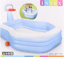 A beépített kosárlabda palánkkal és labdával ellátott játszóközpont remekül ötvözi a vizes szórakozást és a mozgást. Tágas, 257 × 188 × 130 cm-es mérete és 682 l űrtartalma (32 cm vízszintnél) elegendő helyet biztosít 3 éves kortól.