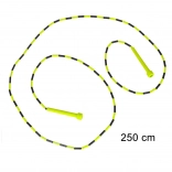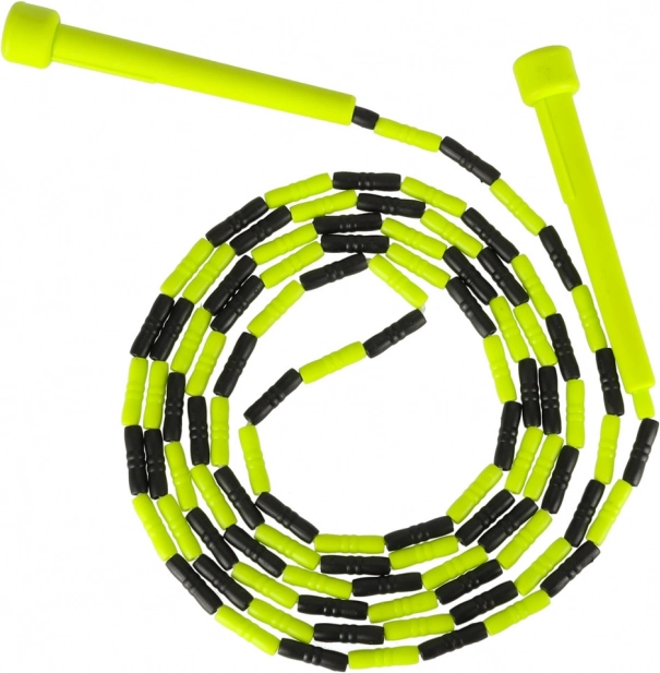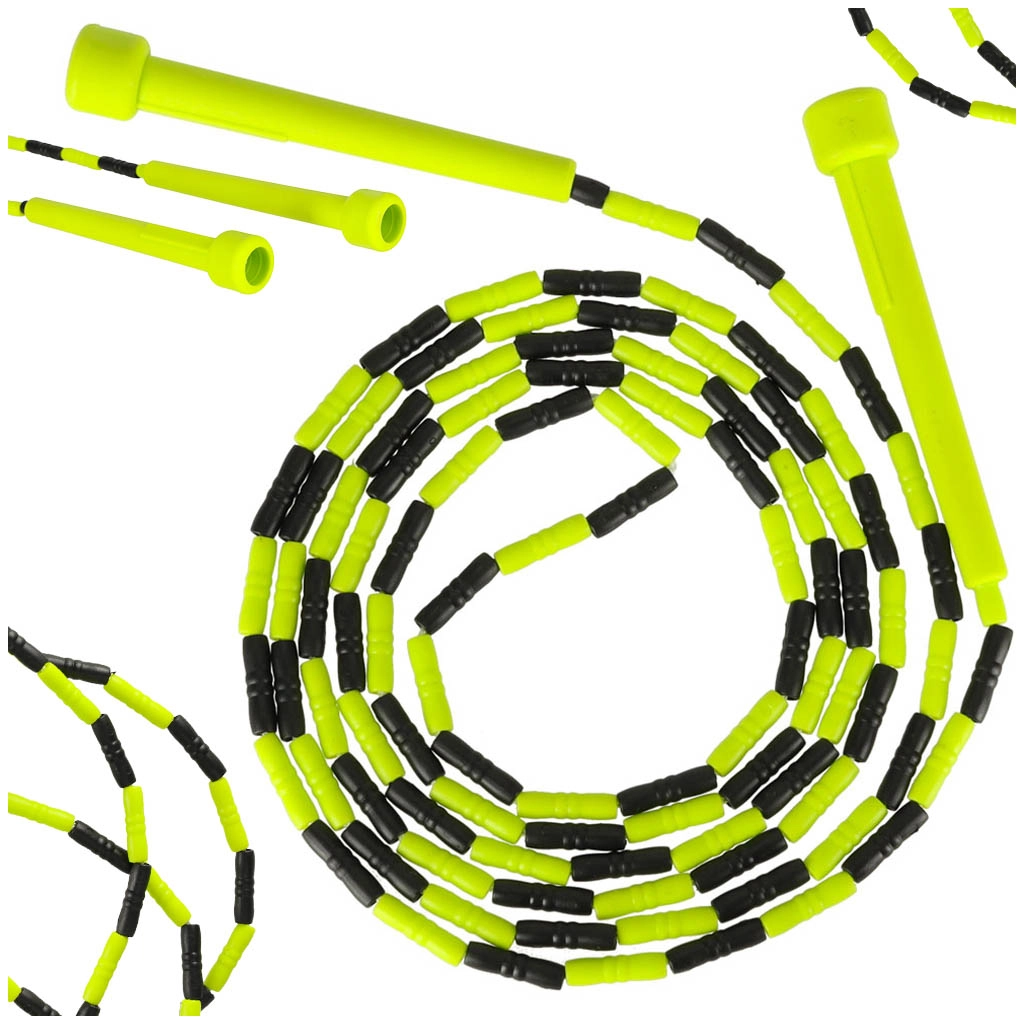 A műanyag gyöngyök védik a kötelet, javítják a ritmust és a láthatóságot forgás közben. A 250 cm-es hossz könnyen állítható gyermekek és felnőttek számára, így ideális a teljes testes edzéshez – lábak, farizmok, core és karok. A könnyű, kompakt kivitel bárhová elkísér.