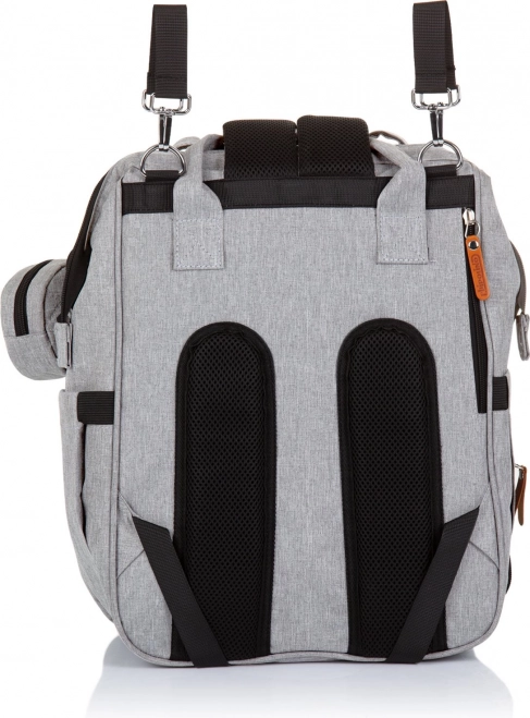 Praktikus és elegáns pelenkázó hátizsák hamuszürke árnyalatban, amely nagy kapacitást, átgondolt zsebszervezést és kényelmes viseletet kínál háton és babakocsin egyaránt. Ideális mindennapi sétákhoz és hétvégi kirándulásokhoz a babával.