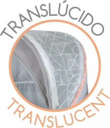 Minőségi textíliák és nyomott PVC kombinációja üvegfelület-hatást kelt. A rézszínű részletek elegáns, városi megjelenést adnak a babakocsinak.