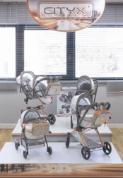 A CITY X 2024 kollekció prémium textíliákat ötvöz nyomott PVC-vel, amely „üvegszerű” felületeket idéz. Az elegáns szürke–ezüst kivitelhez trendi réz elemek társulnak, kiemelve a babakocsi könnyedségét és légies megjelenését. A alacsony tolókarnak és a stabil váznak köszönhetően a legkisebbeknek is ideális, tökéletes a szerepjátékhoz és a fantázia fejlesztéséhez.