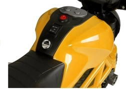 A kompakt, akkumulátoros GTM1188 gyermekmotor sárga színben stabil haladást, élethű megjelenést és egyszerű kezelést kínál. Masszív vázzal, integrált oldalsó stabilizáló kerekekkel, hátramenettel és üres fokozattal, valamint elöl színváltós LED fényszóróval rendelkezik. A csendes 35 W-os motor a hátsó kereket hajtja, a motor akár 3 km/h sebességgel halad. Ideális 3 éves kortól 25 kg teherbírásig, CE tanúsítvánnyal a biztonságos játékért.