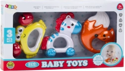 Bébi csörgőkészletünk ideális választás a legkisebbek számára, három aranyos csörgőt tartalmaz róka, zebra és rák formájában. Minden csörgő élénk, magával ragadó színekben van megtervezve, amelyek stimulálják a látásérzékelést és a baba érdeklődését.