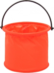 A narancssárga összecsukható vödör könnyen laposra hajtható, ami megkönnyíti tárolását és szállítását.