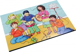 Ezzel a puzzle-val a gyerekek olyan helyzetekbe kerülhetnek, mint az olvasás, úszás, zenélés vagy szabadtéri tevékenységek, így fejlesztve a kreativitásukat és a problémamegoldó képességüket. Ezáltal nemcsak a motorikus képességek, hanem a legkisebbek szociális készségei is fejlődnek.