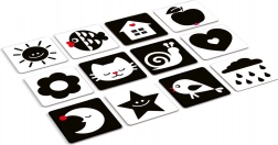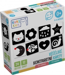 A KukiKuk kontrasztos kártyák ideális első „játéknak” számítanak, amelyet már születéstől kezdve használhatsz. Az újszülöttek elsősorban az erőteljes kontrasztokat érzékelik – ezért hatnak rájuk különösen jól a fekete-fehér képek: támogatják a látás, a figyelem és a korai kognitív készségek fejlődését. A kártyák elég nagyok, tartós anyagból készültek, és úgy lettek tervezve, hogy felkeltsék az érdeklődést, ugyanakkor ne terheljenek túl.