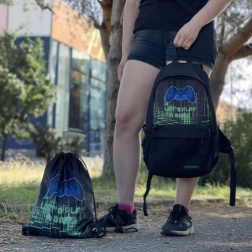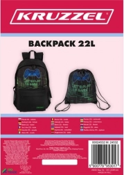 A KRUZZEL stílusos, játékosoknak készült iskolai hátizsákja ötvözi a tartósságot, a kényelmet és az okos rendszerezést. OXFORD 600D szövetből készült, 22 l űrtartalmú, ergonomikus, EPE habbal párnázott pántokkal és szellőző hátpanellel. Van benne párnázott laptopzseb, oldalsó hálós zsebek, a csomagban pedig egy, azonos gamer dizájnú tornazsák is található.