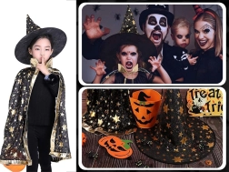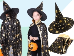- Gyermek boszorkány/varázsló jelmez (köpeny + hegyes kalap)