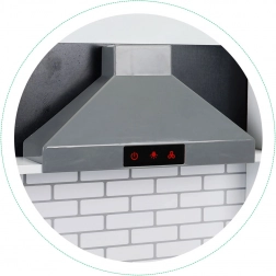 A konyha felső részét páraelszívó és praktikus akasztók díszítik, melyeknek köszönhetően a kiegészítők mindig kéznél lesznek, a konyha pedig átlátható marad.