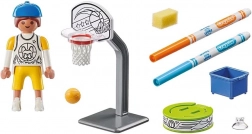 A kosárlabdázó szívesen gyakorolja készségeit a kosár alatt, köszönhetően a speciális mechanizmusnak, amely lehetővé teszi a labda dobását különböző szögekből – a figura kézpozíciójától és a rugó működésétől függően. Az átlátszó karika a kosárnál növeli a lövés pontosságát. Speciálisan bevont matricák lehetővé teszik színes tervek kialakítását a mellékelt filctollakkal. Az apró javítások könnyen elvégezhetők a mellékelt szivaccsal. A szórakoztató PLAYMOBIL készlettel a gyerekek mesterei lehetnek a kosárlabdának!