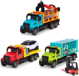 A Dickie Toys 22 cm-es, valósághű VOLVO teherautója részletgazdag kidolgozásával és akciódús játékot kínáló funkcióival örömet szerez a kis sofőröknek. 3 különböző változat érhető el mozgó elemekkel és lendkerekes meghajtással – az autószállítótól a villástargoncás szerelvényen át egészen a rönkszállító járműig. Ideális otthoni, kinti játékhoz és a homokozóba is.