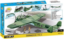 Ez a nagyméretű Dornier Do 17Z-2 bombázómodell 57,5 cm-es szárnyfesztávjával és 49 cm-es hosszával tűnik ki. Az új, kétkomponensű fröccsöntéssel készült elemeknek köszönhetően precízen adja vissza az orr-rész és a kabin jellegzetes formáját. A nyomtatott műszerekkel ellátott pilótafülkébe a mellékelt két pilótafigura ültethető. Minden grafikai részlet tartós nyomtatással készült – nincsenek matricák.
