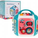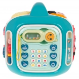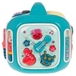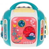 Az interaktív kocka játékra és tanulásra egyaránt készült. A gyerekek felfedezik a színeket, formákat, állatok és járművek neveit, ujjgyakorlattal fejlesztik a forgó elemeknél az ügyességet, valamint különböző dallamokat és hangokat ismernek meg. A felső panel zongorával 3 üzemmódot és érzékeny billentyűket kínál a könnyű játékért.