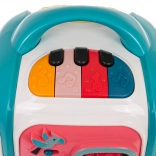 Színes, interaktív doboz gazdag fény- és hangeffektekkel, amely hosszú órákra lefoglalja a 3 évesnél idősebb gyerekeket. Minden oldal más-más tevékenységet kínál – mini zongora, hangszerek, telefon számokkal és állatkákkal, forgó fogaskerekek, valamint szélforgó és napocska. A praktikus fogantyú megkönnyíti a hordozást, az élénk színű minőségi műanyag pedig fejleszti az érzékelést és a finommotorikát.