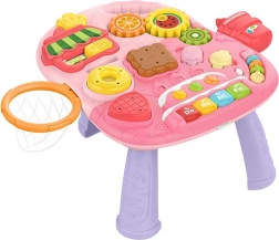 Az asztal elülső részén található interaktív panel valóban egy aktív központ! Gyermeke labdákat dobhat mini kosárba, összehasonlíthat geometriai formákat, és torta alakú zongorán játszhat. A játszó és világító rák, mozgó szélvitorlák és képes könyv-gomba állatképekkel fejlesztik a manuális és szenzoros készségeket, edzik a szem-kéz koordinációt és a zenei érzékenységet.