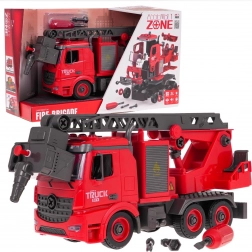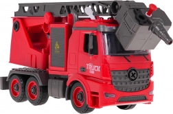 Interaktív, csavarozható tűzoltóautó vízfunkcióval, 3 éves kortól. A készlet része egy csavarhúzó cserélhető bitekkel a jármű szétszereléséhez. A tűzoltóautó elsőkerék-hajtású. A tetőn két villogó fény és működő gombok találhatók. A gombok riasztóhangot, motorindítást, tolatást és kürtöt aktiválnak. A jármű kosaras emelője kézzel emelhető, süllyeszthető és kihúzható. 360 fokban is forgatható. A tartály vízzel való feltöltése és a tömlő végén lévő gomb megnyomása után vízsugár spriccel. A játék 3 darab AG13 elemmel működik (a csomag tartalmazza). .. A tűzoltóautó funkciói: . - 3 éves kortól ajánlott, .- a legmagasabb minőségű anyagokból készült, .- a jármű szétszerelhető (cserélhető bitekkel ellátott csavarhúzó a csomagban), .- elsőkerék-hajtás, .- a kosaras gém 360 fokban forgatható, .- a létra emelhető, süllyeszthető és kihúzható, .- a kosár fel-le mozgatható, .- vízpermet a tömlőből, .- fényhatások a fülke tetején villogó lámpákkal, .- hanghatások: riasztó, motorindítás, tolatás és kürt. . |