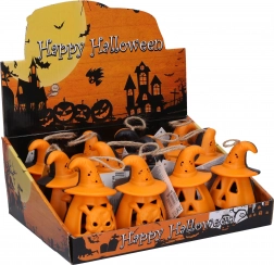 Teremtsd meg a tökéletesen hátborzongató hangulatot ezzel a kompakt dekorációval – a világító halloween tökkel 11 × 6,5 cm méretben. Ideális az asztalra, ablakpárkányra vagy gyerekszobába, azonnal használható, mivel a csomag tartalmaz 3× LR54 (AG10) elemet.