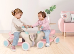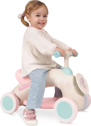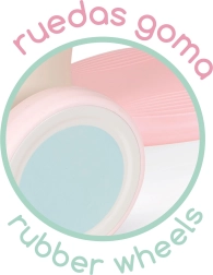 A gumírozott kerekek csendes futást és biztos tapadást nyújtanak. A stabil négykerekű konstrukció támogatja a kezdő kis motorosok egyensúlyát.