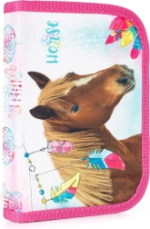 A szett tartalmazza a fényvisszaverő elemekkel ellátott hátizsákot, a zsinórral összehúzható tornazsákot és az egyemeletes, töltet nélküli tolltartót – mindet egymáshoz illő, ló témájú dizájnban.