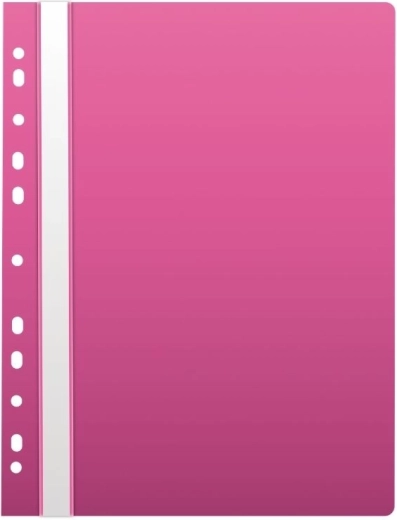 Ez a gyorsfűző tökéletes megoldás mindazok számára, akik szeretnék a dokumentumaikat áttekinthetően és biztonságosan tárolni. Az első oldal átlátszó, 120 mikron vastag, így könnyen látható a tartalom anélkül, hogy kinyitnánk. A hátsó oldal élénk rózsaszín, átlátszatlan és erősebb, 180 mikron vastagsággal, amely biztosítja a tartósságot és stabilitást. Van egy feliratozható csík, amely lehetővé teszi a gyors és egyszerű tartalomcímkézést. A kötési kapacitás akár 2 cm, így több papírt is elhelyezhetünk benne.