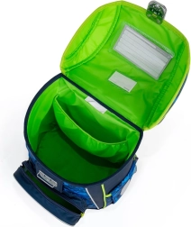 A fő rekesz minden iskolai felszerelést elnyel, és a belső merevítésnek köszönhetően megtartja a formáját. Az elülső zseb ideális uzsonnának és apróságoknak, a biztonságot növeli a fényvisszaverő elemmel ellátott fém csat és a körbefutó fényvisszaverő részletek. A merev alsó rész megóvja a tartalmat a felborulástól és a kiszóródástól, a kiegészítő akasztók pedig megkönnyítik a pántok rögzítését.
