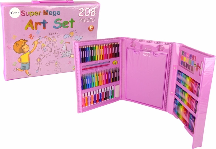 rózsaszín kreatív rajzkészlet gyerekeknek, 208 darabos